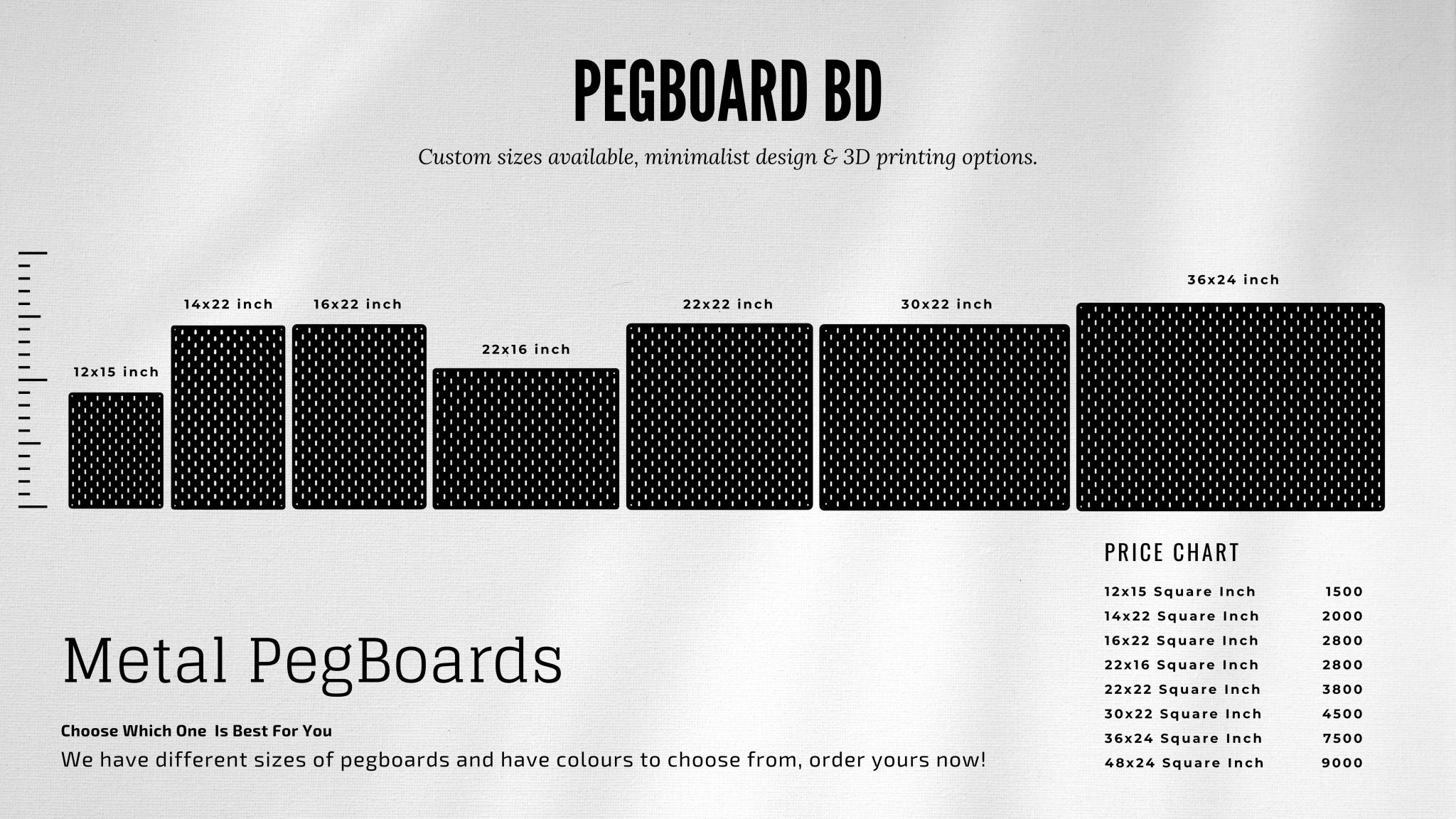 PegBoard BD offers premium metal pegboards and accessories like 3D-printed mounts, key rings, and acrylic mounts. Based in Dhaka, we combine style and function to bring creative organization to your space.